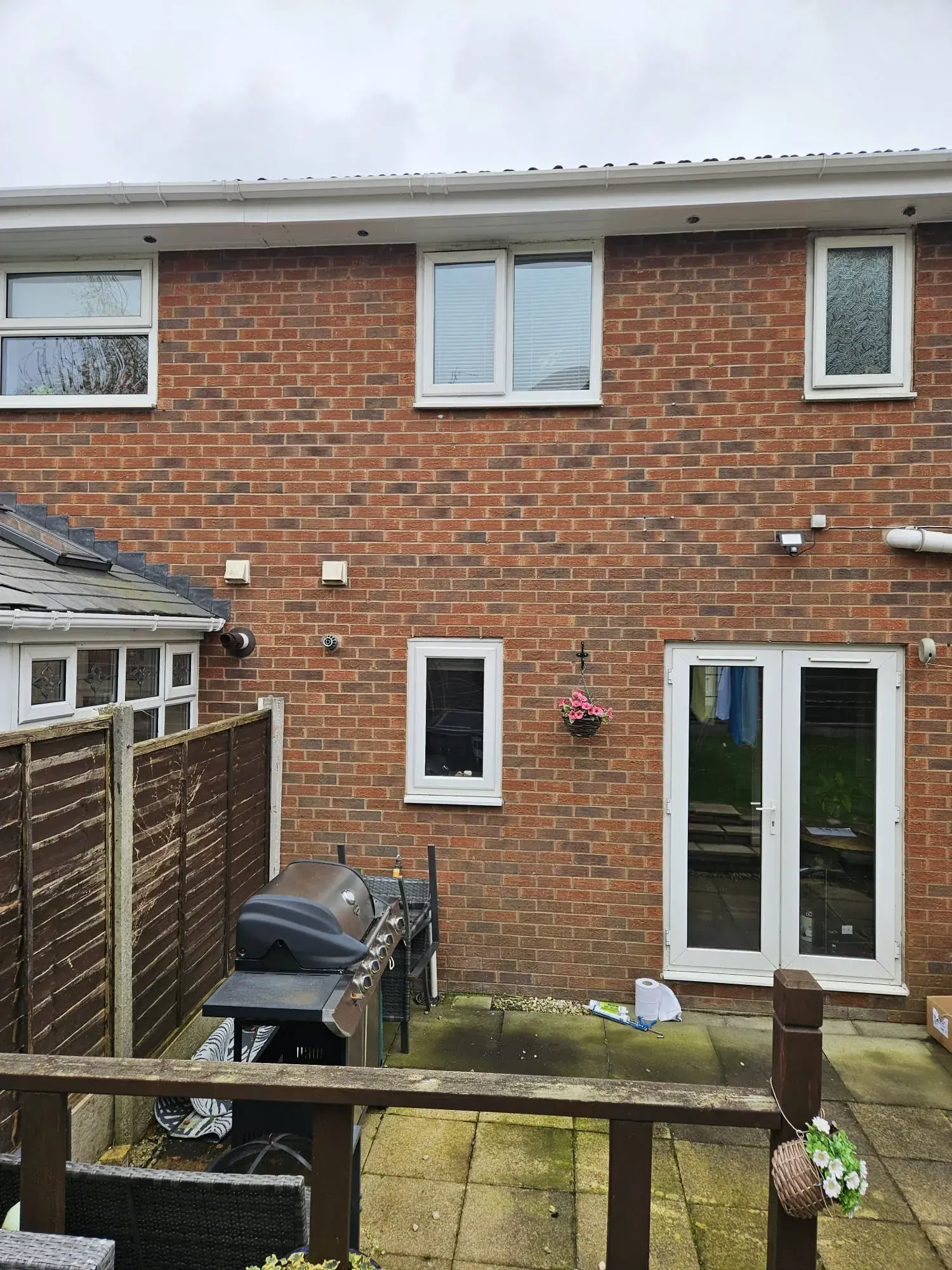 The 2 houses only had 1 downpipe this was causing gutters to over flow, so we added an additional downpipe and re routed to a gully so that the 2 pipes can now take all heavy rain fall with no over spill.